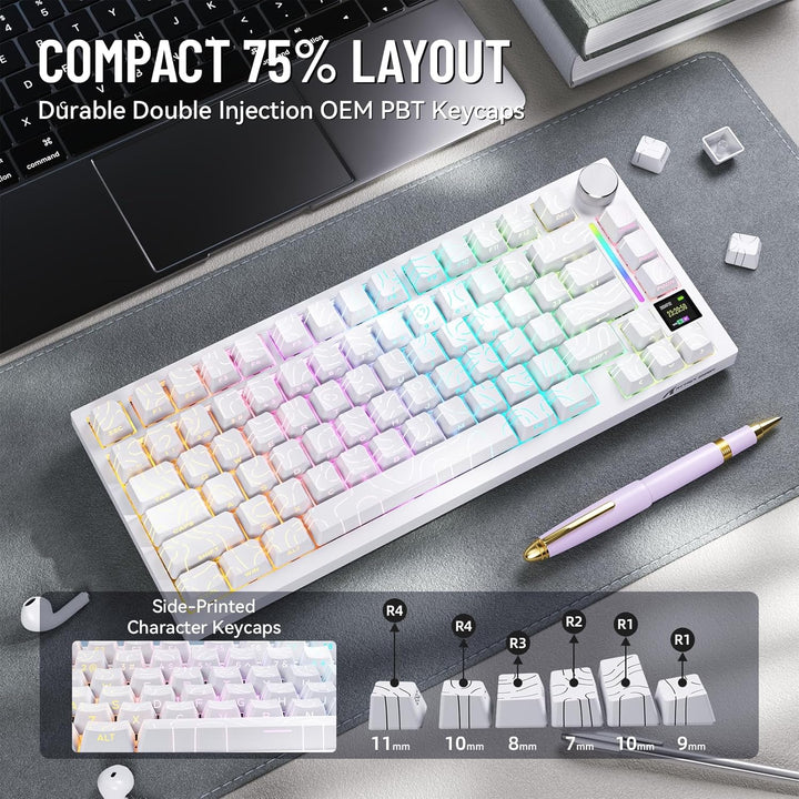ATTACK SHARK Wireless Mechanical Keyboard with TFT Smart Display&Knob,75% Bluetooth/2.4GHz/USB-C Wired Gaming Keyboard